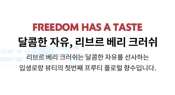 리브르 베리 크러쉬는 달콤한 자유를 선사하는 입생로랑 뷰티의 첫번째 프루티 플로럴 향수입니다.