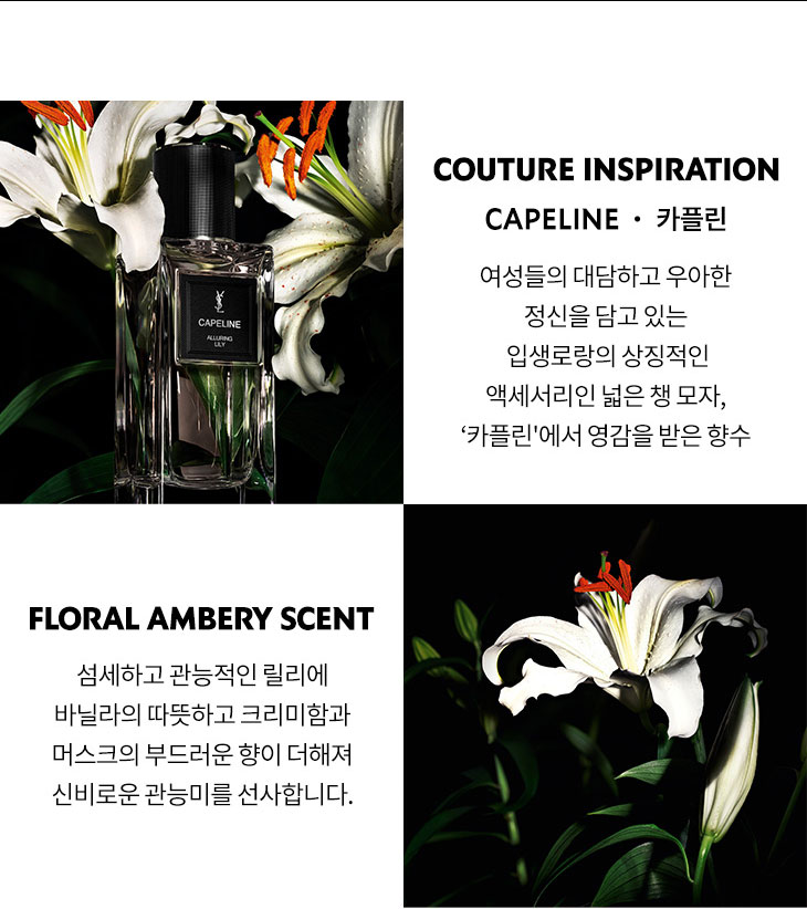 세련미와 보헤미안 감각이 릴리에 담겨, 매혹적인 아우라를 통해 대담함과 자신감을 드러내는 플로럴 앰버리 향수입니다.