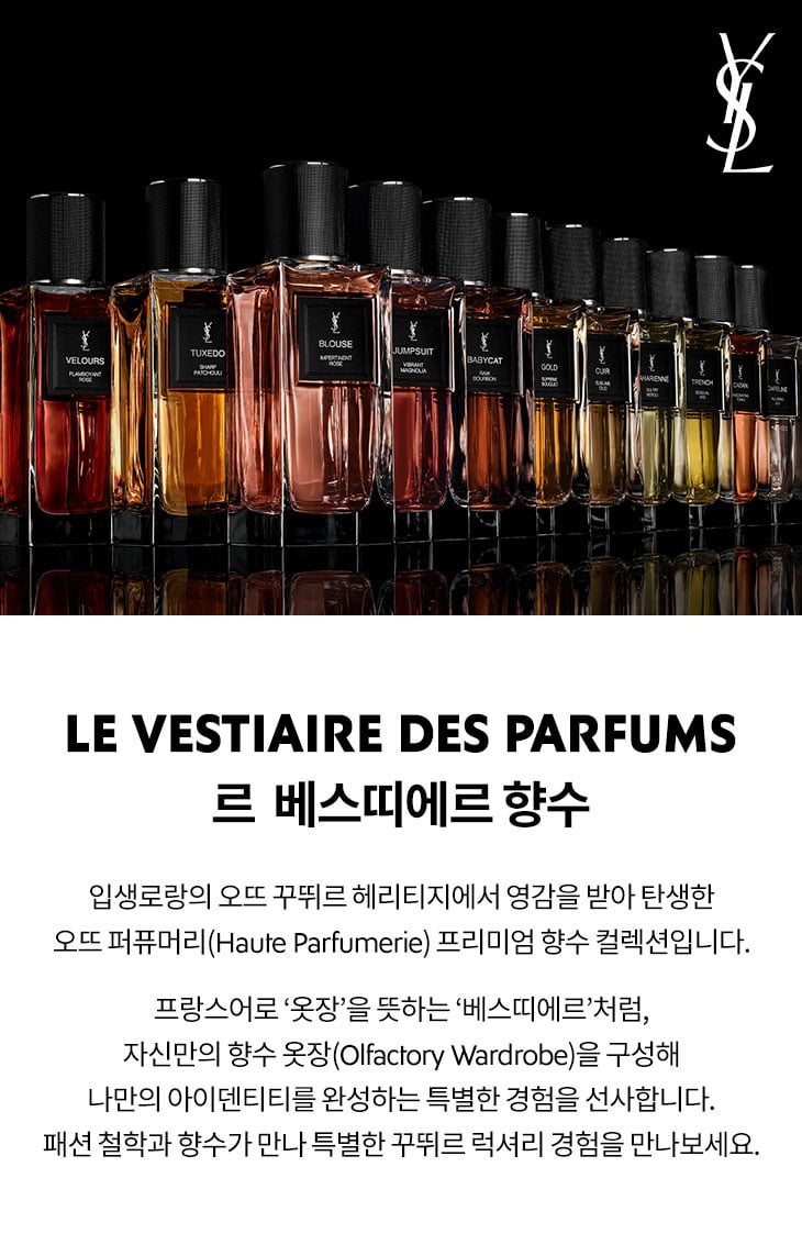 입생로랑의 오뜨 꾸뛰르 헤리티지에서 영감을 받아 탄생한 입생로랑 뷰티의 오뜨 퍼퓨머리(Haute Parfumerie) 프리미엄 향수 컬렉션입니다.